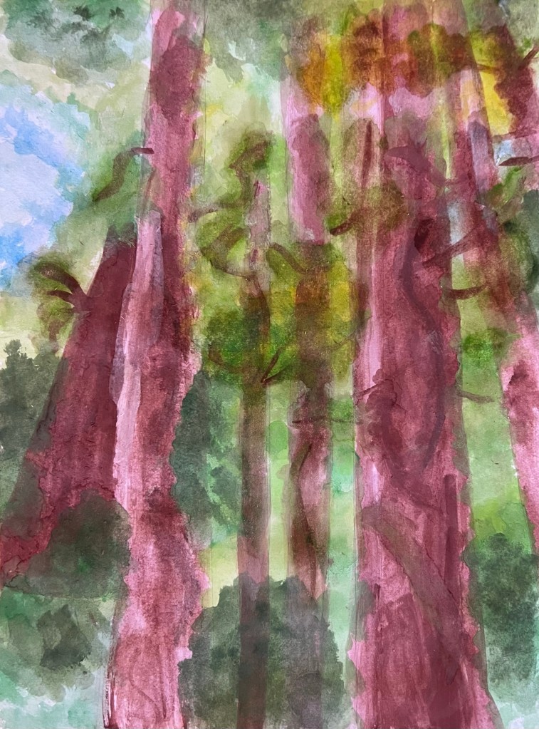 Muir Wood – Tree Tales Watercolour Muir Wood by Dalila – inspired by Saba Khan Artease, Tree Tales Art workshops Saba Khan explained how trees communicate and Dalila added this line “If you listen you’ll hear us” on her painting Share this: Click to share on X (Opens in new window) X Click to share on Facebook (Opens in new window) Facebook Click to email a link to a friend (Opens in new window) Email Click to share on Tumblr (Opens in new window) Tumblr Click to share on Pinterest (Opens in new window) Pinterest Click to share on WhatsApp (Opens in new window) WhatsApp Like Loading...