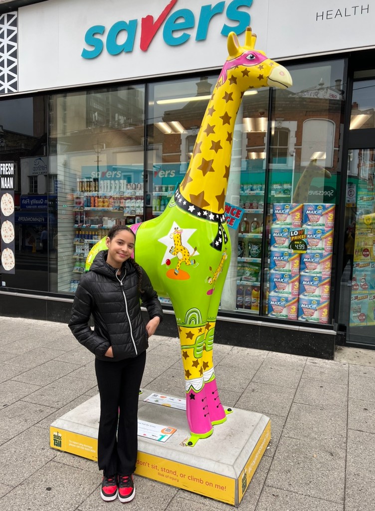 My Giraffes’ Adventure Dalila’s mini giraffe she painted with white & silver glitter acrylic Viewing a few giraffes whilst out and about in Croydon #croydonstandstall Share this: Click to share on X (Opens in new window) X Click to share on Facebook (Opens in new window) Facebook Click to email a link to a friend (Opens in new window) Email Click to share on Tumblr (Opens in new window) Tumblr Click to share on Pinterest (Opens in new window) Pinterest Click to share on WhatsApp (Opens in new window) WhatsApp Like Loading...
