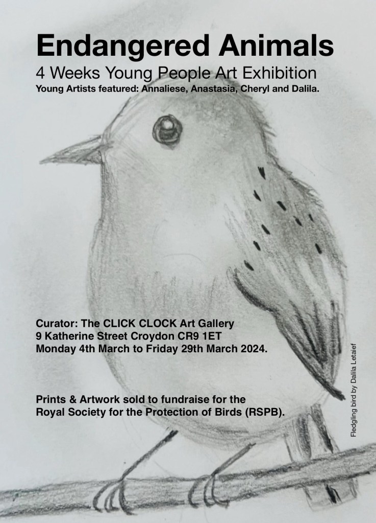 Dalila’s Exhibition of arts alongside 3 other young talented artists to fundraise for the RSPB. Link to Just Giving fundraising page